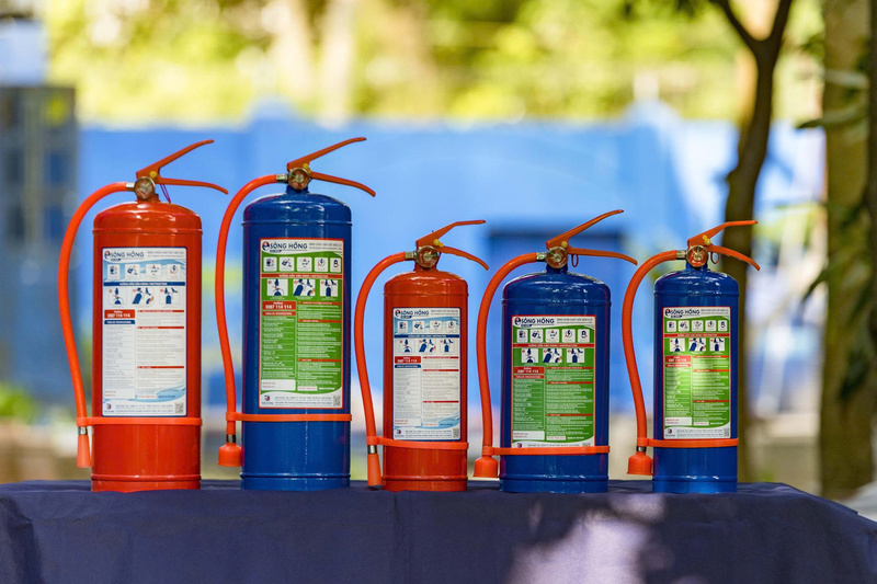 - Bình chữa cháy các loại: bột ABC, khí CO₂, bình gốc nước phù hợp nhiều tình huống cháy.