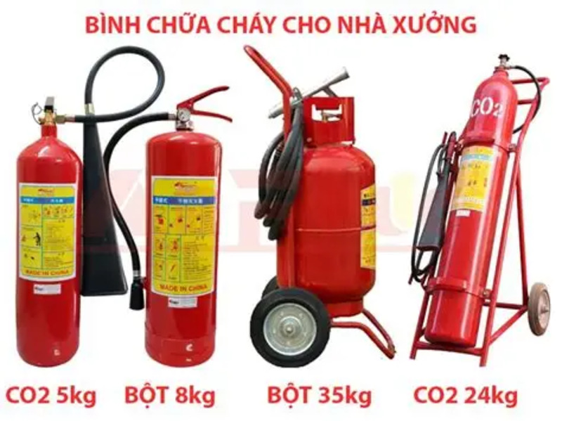 - Bình chữa cháy xe đẩy (phù hợp cho khu vực diện tích lớn)