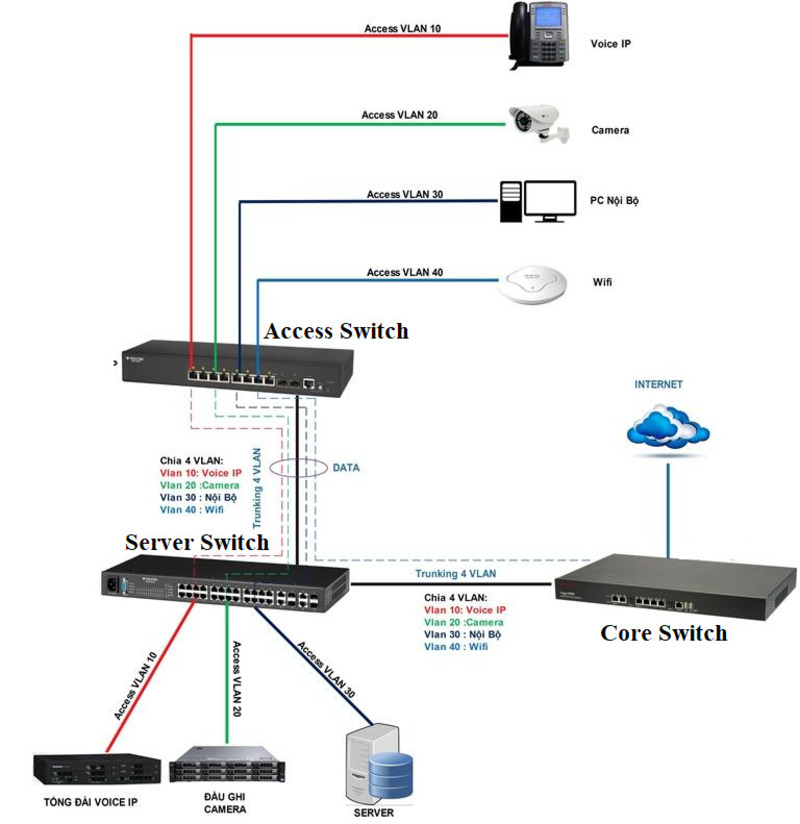 Mạng LAN (Local Area Network) là hệ thống kết nối các thiết bị như máy tính, máy in, server trong cùng một không gian làm việc. Đây là nền tảng để chia sẻ dữ liệu, sử dụng chung tài nguyên và vận hành phần mềm nội bộ.