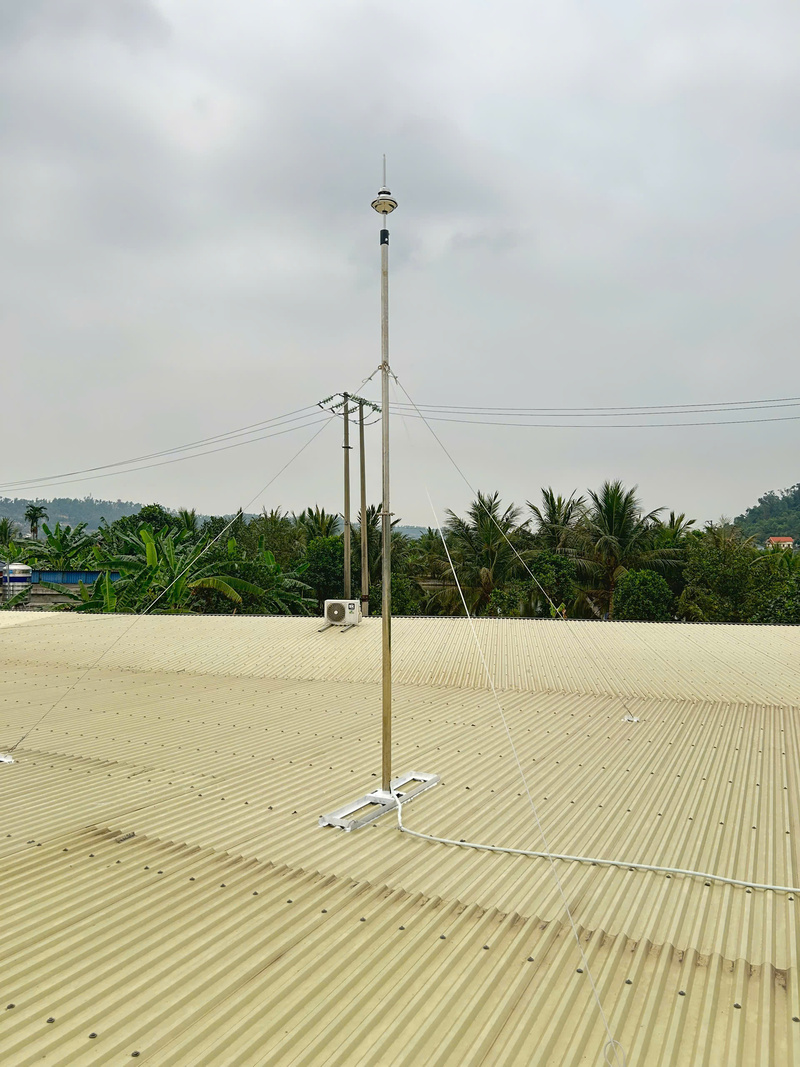 - Kim thu sét (cột thu lôi): Được lắp đặt ở vị trí cao nhất của công trình, có nhiệm vụ thu hút tia sét