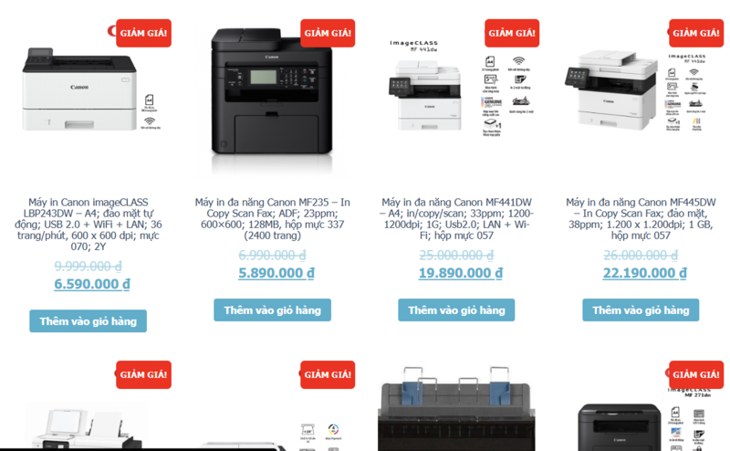 - Danh mục sản phẩm đa dạng (Canon, Brother,…)