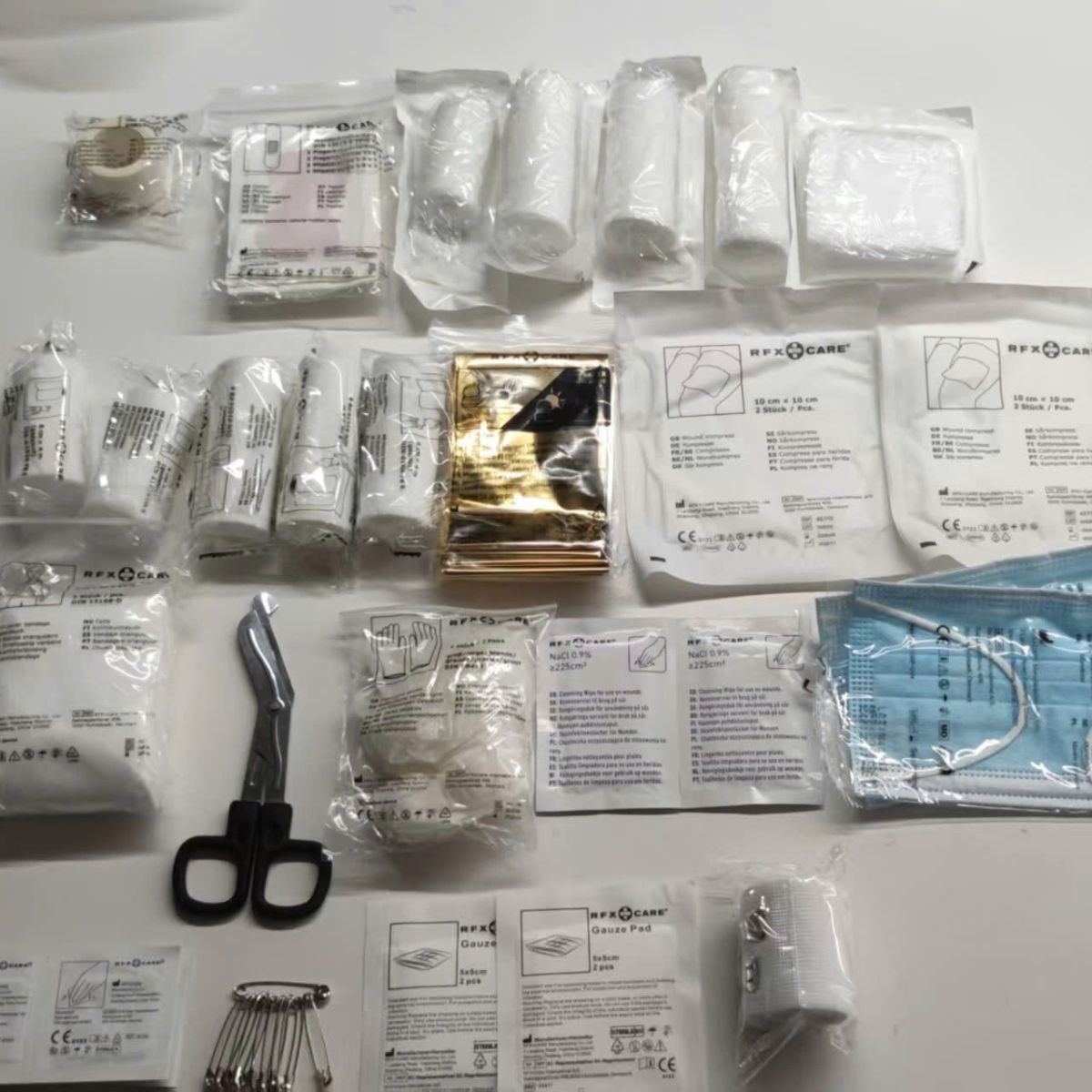 - First aid bag, 23x15x6cm (1 pc) – Túi sơ cứu 23x15x6cm (1 cái)* Đạt tiêu chuẩn trang thiết bị y tế loại A theo quy định nghị định 98 Chính Phủ. Số công bố: 240000578/PCBA-HCM